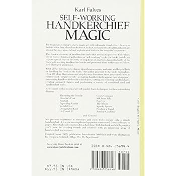 Amazon.com Review Handkerchiefs are some of the handiest props in performing magic and Karl Fulves shows you how to get full use out of them, even if you're just a beginner. These are 61dazzling tricks that anyone can do with only moderate practice, including those that usually require advanced sleight-of-hand. Before long you'll be passing a pencil through a handkerchief without making a hole, having a volunteer walk through "solid" ribbons as she holds a frees a handkerchief that ties them together, and more. The instructions are clear and the ample illustrations make them all the easier to follow. Read more About the Author Karl Fulves is one of the most respected authorities in the field of magic. For over 40 years, he has written hundreds of books on the subject and taught the art of illusion to thousands of people of all ages. This legendary figure also edited and published such magazines as Epilogue and The Pallbearers Review. Read more